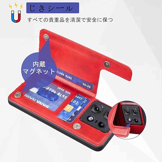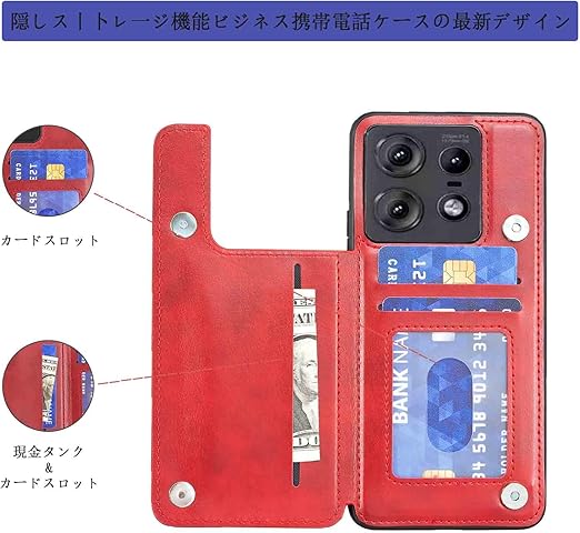【Aqier】カバー 用 Moto Edge 60 Pro/Edge 60s Pro ケースカード(レッド)モトローラedge60プロ スマホケース 背面カード 収納 軽量 多機能 ケース 手帳型 モトedge60sプロ RED a