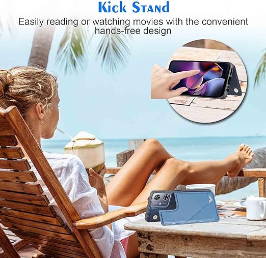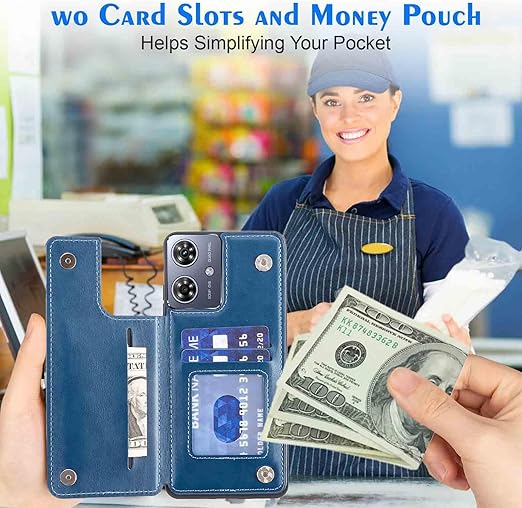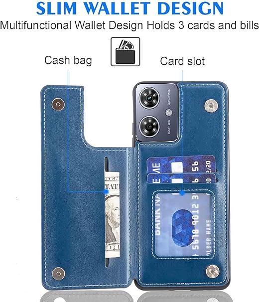 【Geshh】Moto G64 5G/G64Y 5G レザーケース(ネイビーブルー)耐衝撃耐衝撃 財布型カバー カード収納 横置きスタンド機能 開閉式 ストラップ付き 薄型レザーケース 対応 モトローラ モト g64y 5G BLUE a