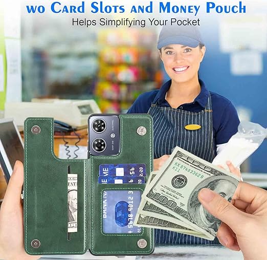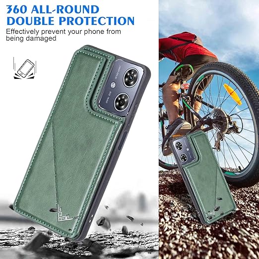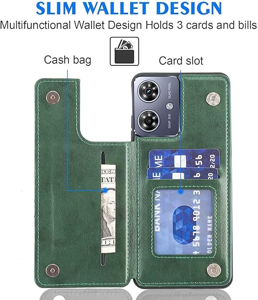【Geshh】Moto G64 5G/G64Y 5G レザーケース(ダルグリーン)耐衝撃耐衝撃 財布型カバー カード収納 横置きスタンド機能 開閉式 ストラップ付き 薄型レザーケース 対応 モトローラ モト g64y 5G GREEN a