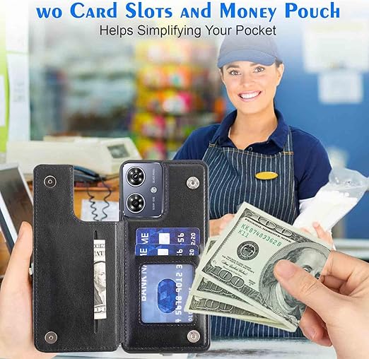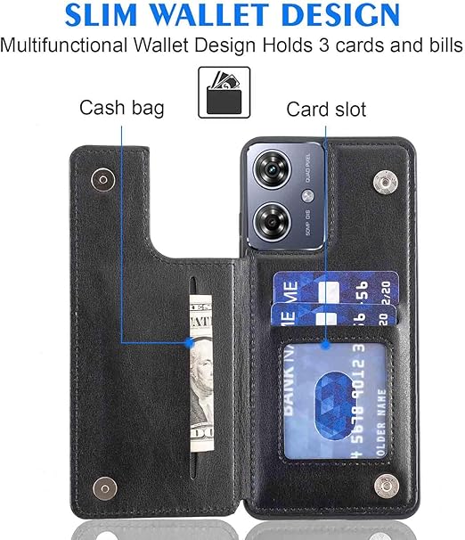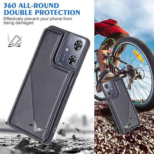 【Geshh】Moto G64 5G/G64Y 5G レザーケース(ブラック)耐衝撃耐衝撃 財布型カバー カード収納 横置きスタンド機能 開閉式 ストラップ付き 薄型レザーケース 対応 モトローラ モト g64y 5G BLACK a