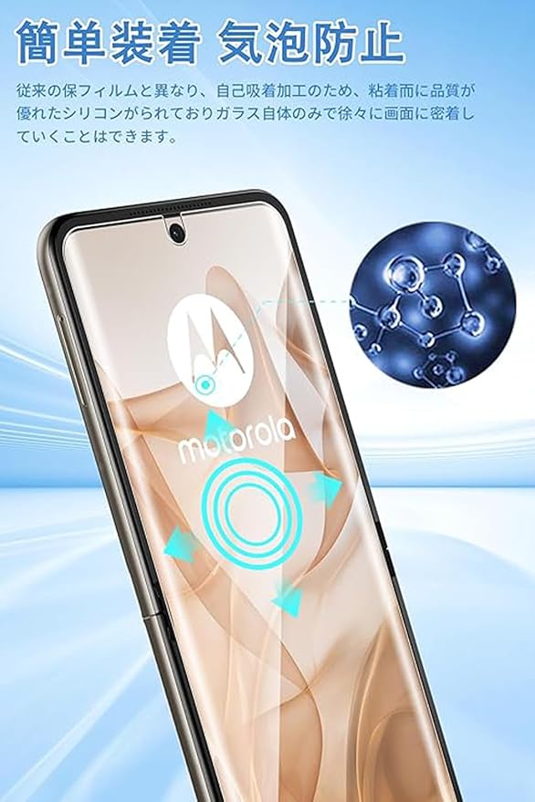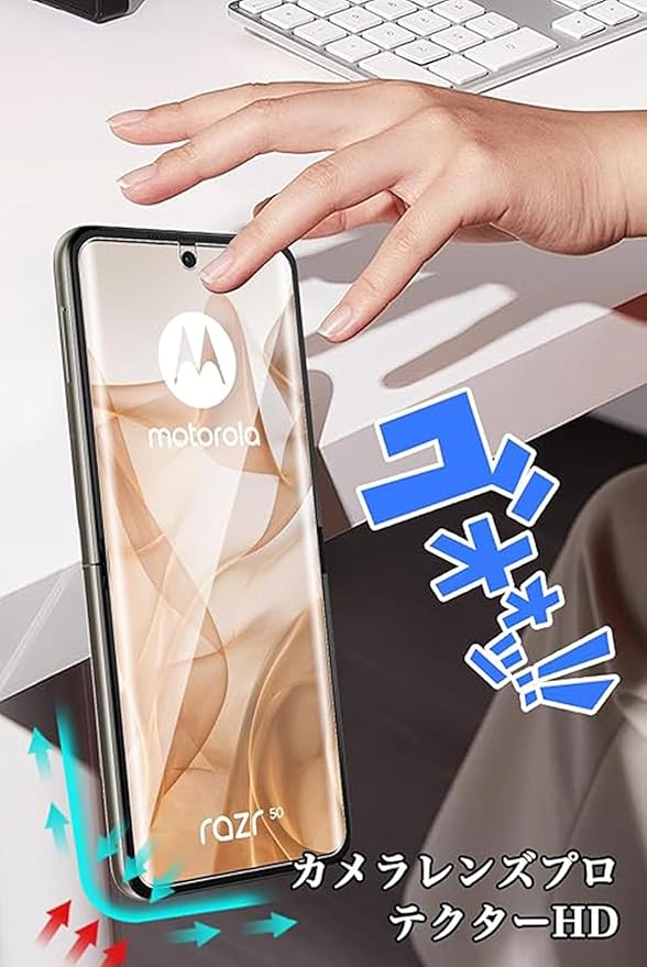 【対応機種】MOTO Razr 60/moto Razr 50 /moto razr 50s /moto raz 50d M-51E 。本TPUィルムは本体端部のカーブによるフィルム剥がれや、浮き上がりの防止、スマホケースの装着スペースを確保するため、本体の曲面の縁にスペースを残すデザインとなっています。