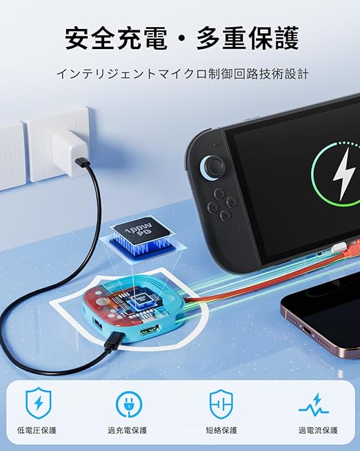 【Switch 2 三合一専用ドッキングステーション】 本製品は Nintendoo Switch 2 専用テレビドックであり、Switch 2 / Switch / Switch OLED と高い互換性を持っています。Switch 2 ドッキングステーションは HDMI ポート×1、Type-C 給電ポート×1、PD 100W 急速充電ポート×1、最大転送速度 5Gbps の USB 3.0 ポート×1 を搭載し、ゲーム・映画・仕事に幅広く対応します。