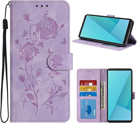 TOO&SOO 対応 Xperia 10 VII ケース 手帳型 エクスペリア10 VII 用ケース 花柄 女性 xperia10VII 携帯カバー 耐衝撃 財布型 スマホケース エクスペリア10VII カバー おしゃれ スタンド機能 カード収納 TPU PUレザー 耐摩擦 擦り傷防止 手触りが良い 軽量 花 (ライトパープル) a
