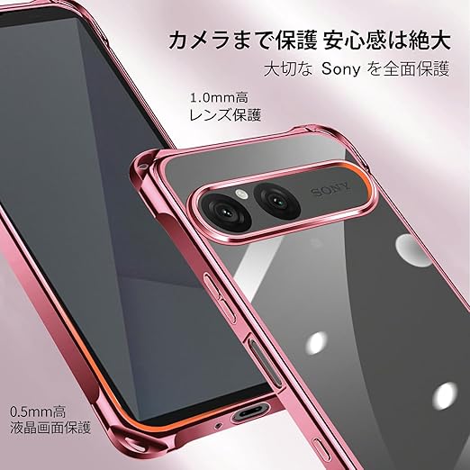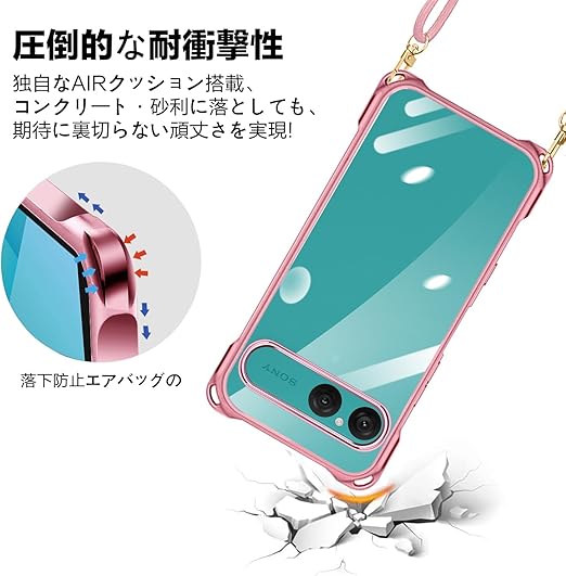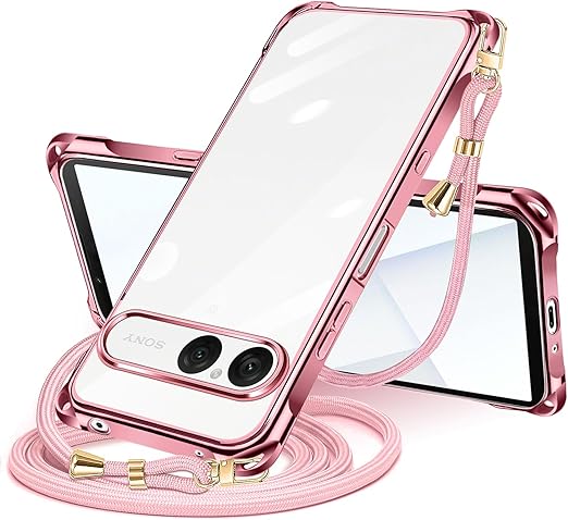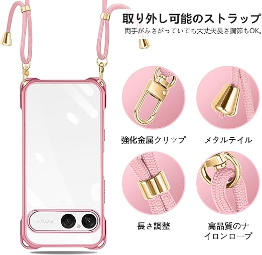 Xperia 10 VII 用 ケース クリア ショルダー xperia10vii スマホケース エクスペリア 10vii カバー 肩掛け 斜めかけ 縄掛けケース 透明 TPU 薄型 耐衝撃 紐付き 斜めがけ 織りストラップ付き ネックストラップ ショルダー 縦/横 2WAY 長さ調整可能 取り外し可能 落下防止 紛失防止 (ローズゴールド) a