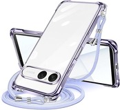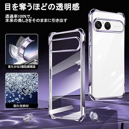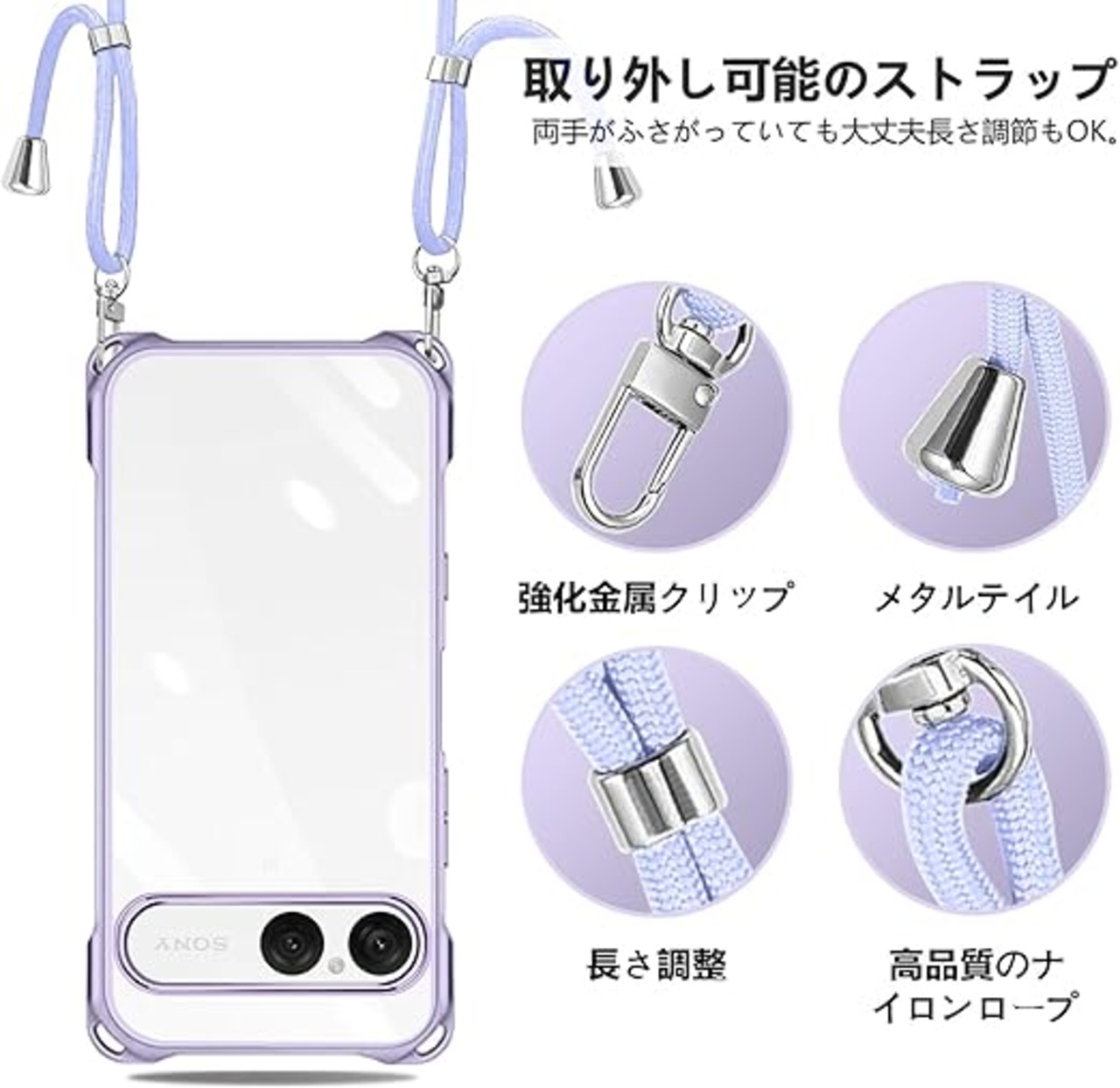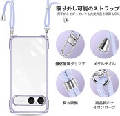 Xperia 10 VII 用 ケース クリア ショルダー xperia10vii スマホケース エクスペリア 10vii カバー 肩掛け 斜めかけ 縄掛けケース 透明 TPU 薄型 耐衝撃 紐付き 斜めがけ 織りストラップ付き ネックストラップ ショルダー 縦/横 2WAY 長さ調整可能 取り外し可能 落下防止 紛失防止 (パープル) a
