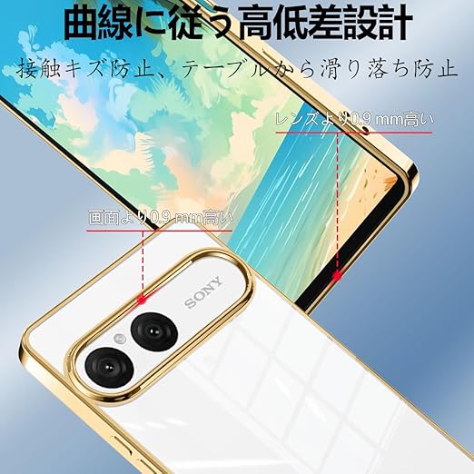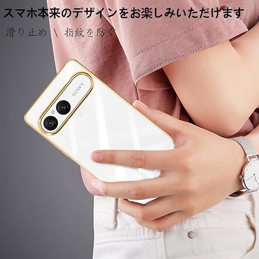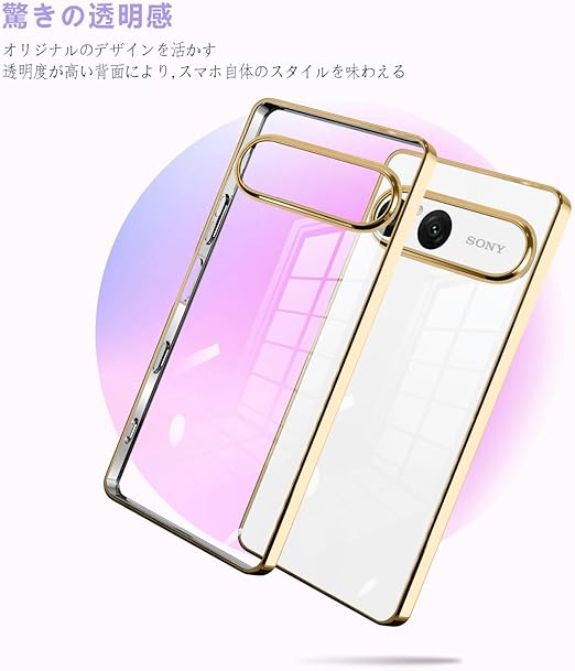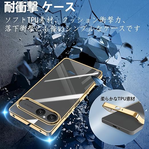 fuweisitong ケース 用の Xperia 10 VII クリア 透明 エスクペリア10vii スマホケース カバー 透明 耐衝撃 TPU ソフト 軽量 軽薄型 ストラップホール付き(ゴールド) a