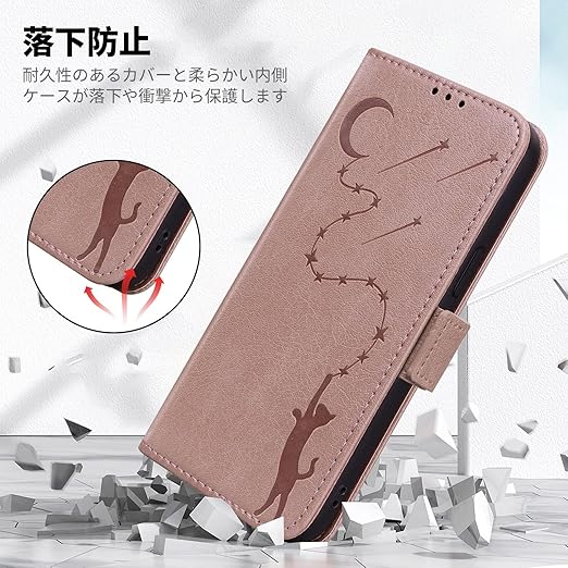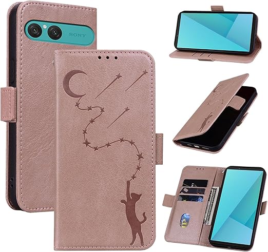 ONETHEFUL 対応 xperia 10 vii ケース 手帳型 xperia10 vii ケース 財布型 Xperia 10 VII スマホケース スタンド機能 エクスペリア10VII カバー カード収納 耐衝撃 レンズ保護 お洒落 PUレザー TPU スピーカーホール 軽量 かわいい おしゃれ 猫 星ローズパウダー a