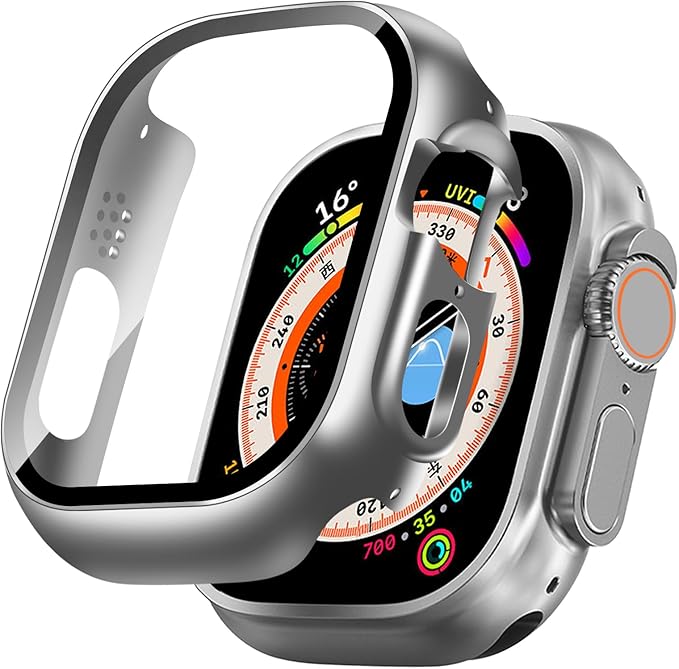 TEMEDO 対応 Apple Watch ケース Ultra 3/2/1 アップルウォッチ カバー PC素材 Apple Watch カバー 全面保護 二重構造 アップルウォッチ ケース ガラスフィルム 一体型 高耐久 高透過率 装着簡?(49mm,シルバー) a
