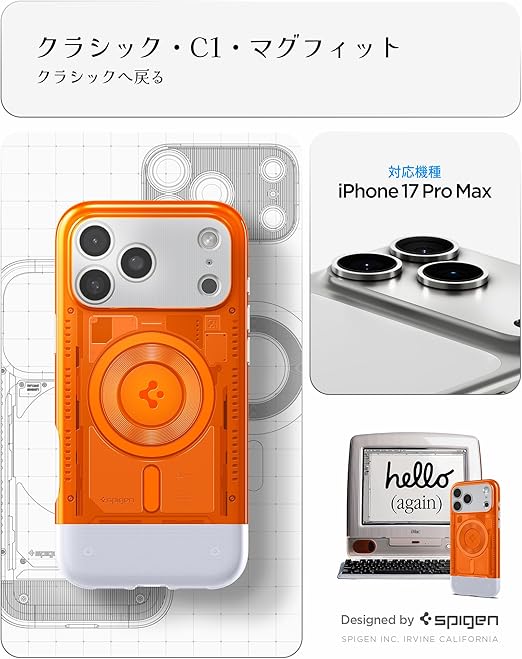 Spigen 【創業18年の技術力】 iPhone 17 Pro Max ケース MagSafe対応 マグネット搭載 米軍MIL規格 クラシック・C1・マグフィット (タンジェリン) ACS09910 a