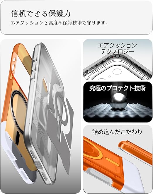 【MagSafe完璧対応】強化されたマグネットが内蔵されており、強い固定力でMagSafe機能を便利に利用できます。