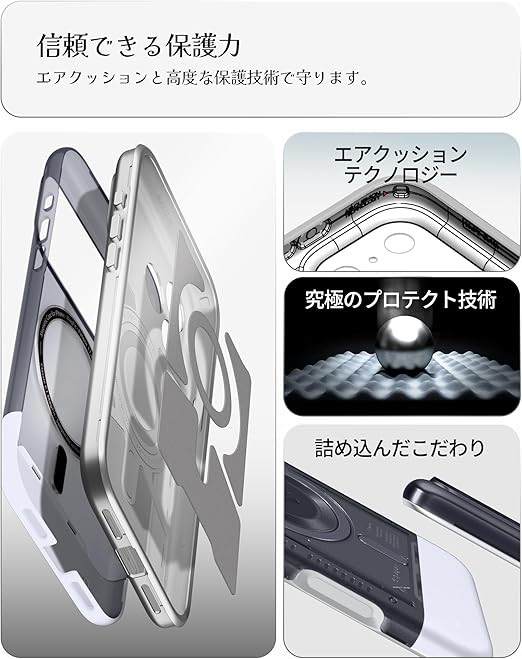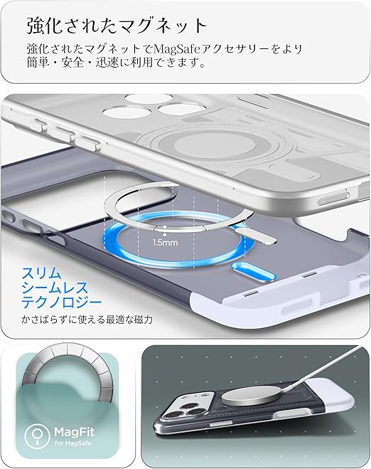 【MagSafe完璧対応】強化されたマグネットが内蔵されており、強い固定力でMagSafe機能を便利に利用できます。