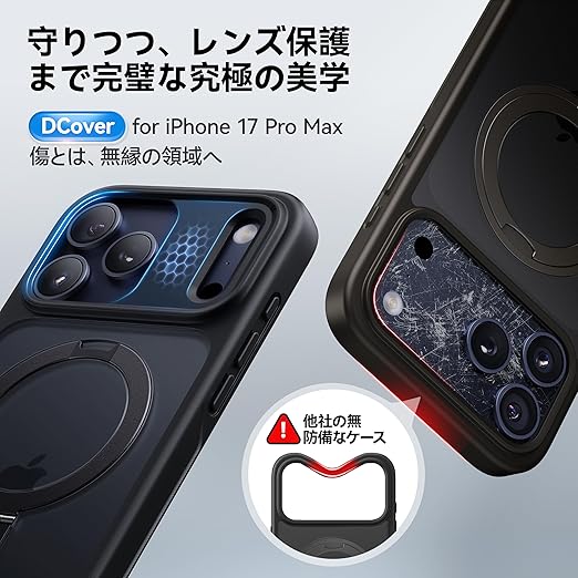 【9年の匠心開発!4つの機能を一度に実現】CASEKOO for iPhone 17 pro Max ケース 米軍MIL規格 横縦両立 カメラモジュール強化保護 指紋防止 マット仕上げ 最大25W急速充電対応 MagSafe対応 黄変防止 半透明 ストラップホール付き ワイヤレス充電対応 特許設計「MagicStand」for いphone17promax ケース 6.9 (ブラック) a