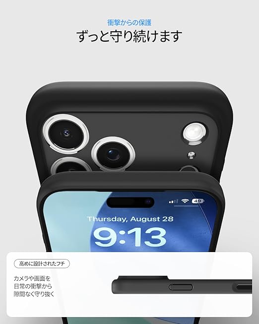 【高耐久のクリア素材】装脱着が簡単になる柔らかいTPU(熱可塑性ポリウレタン)に丈夫なPC(ポリカーボネート)をハイブリッドさせた2重構造でデバイスを守ります。背面のPCにはUVコーティング、側面には黒色のTPUを適用し、黄変を最小限に抑制しました。