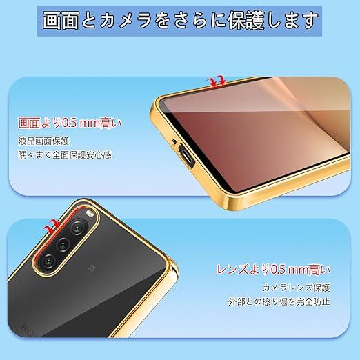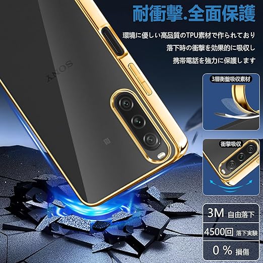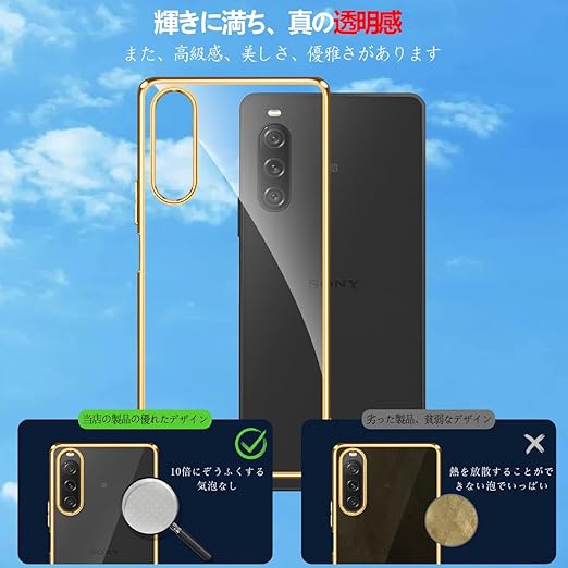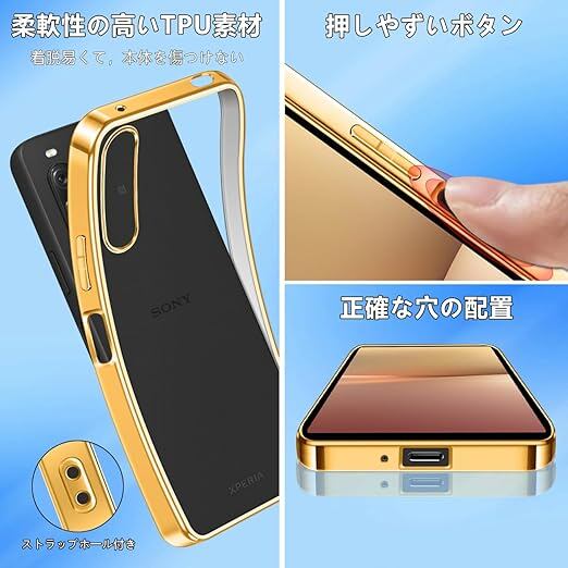 【FULEEYUHN】Sony Xperia 10 V ケース クリア 軽量 薄型 黄変防止 SO-52D SOG11 対応 スマホケース 上質TPU素材 米軍MIL規格取得[耐衝撃 擦り傷防止 落下防止 レンズ保護]ストラップホール付き エクスペリア 10 V カバー 透明(ゴールド) a