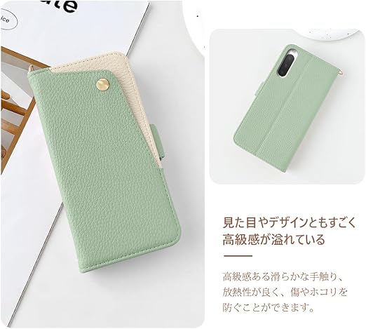 MAGICASE for Xperia 10v ケース 手帳型 エクスペリア 10 V ケース 手帳型 かわいい SO-52D/SOG11 ケース 手帳型 おしゃれ スマホケース エクスペリア10 v シンプル 高級PUレザー 軽量 耐衝撃 全面保護 放熱性 xperia10vケースカバー カード収納 スタンド機能 マグネット式 防塵 擦り傷防止 人気 大人 6.1 inch対応(グリーン) a