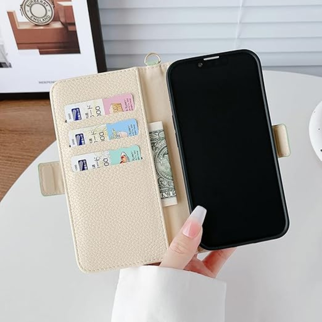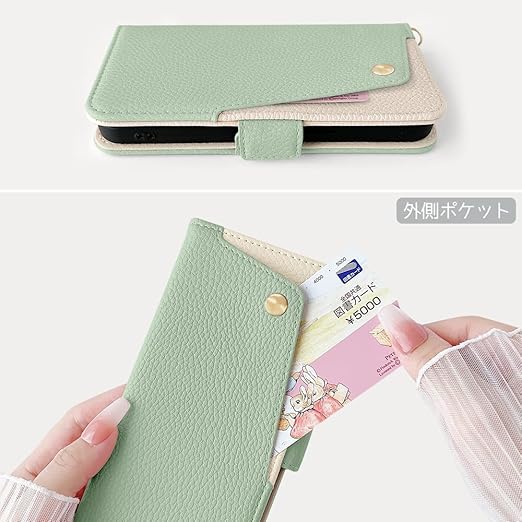 【カード収納 メ 横置きスタンド機能】外 側 ケ ー ス の 外 側 の ボ タ ン を 外 す と ポ ケ ッ ト が、内側に実用性のカード入