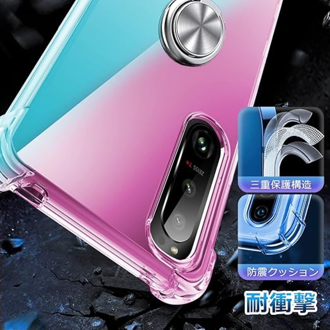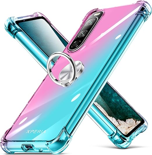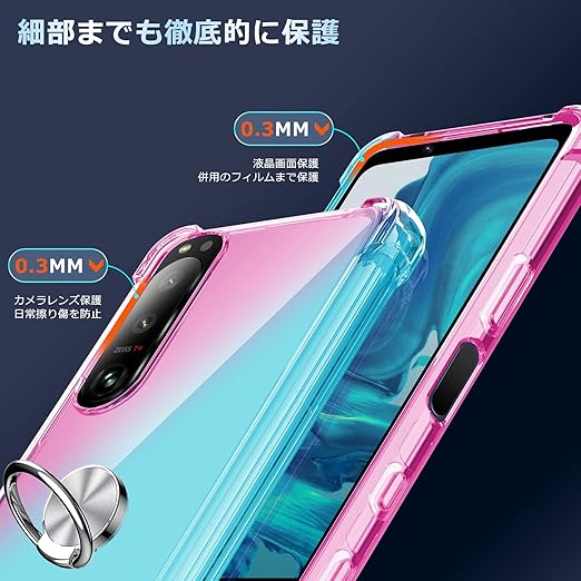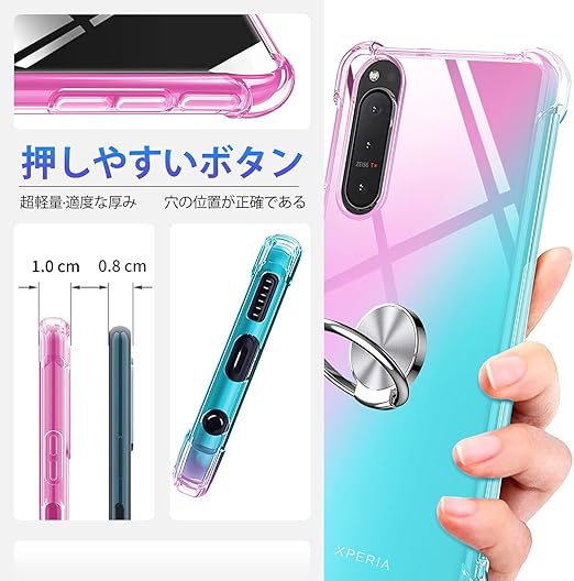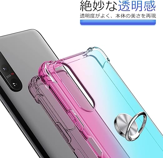 Xperia 10V ケース 耐衝撃 リング TPU クリア 透明 TPU Xperia10V カバー クリア 透明 スリム 薄型 グラデーション スタンド機能 車載ホルダー 黄変防止 指紋防止 防塵 滑り防止 人気 携帯カバー ピンク+緑D634-Xperia 10V-03 a
