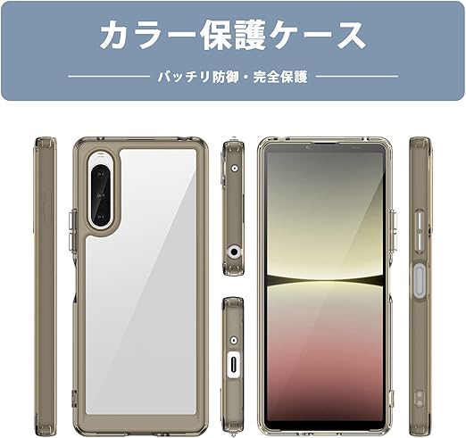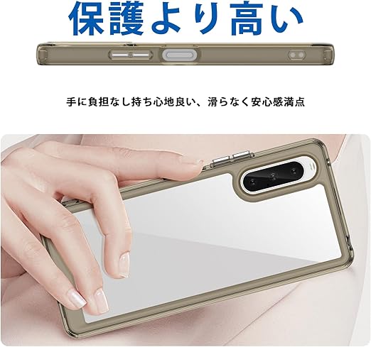 Xperia 10 V 用 ケース耐衝撃 PC背面+TPU 衝撃吸収 Xperia 10 V カバー 薄型 軽量 クリア 擦り傷防止 指紋防止 スリム 耐久 携帯便利 柔軟 カメラ保護 Xperia 10 V スマホケース (グレー) 1-xp 10 V-02 a