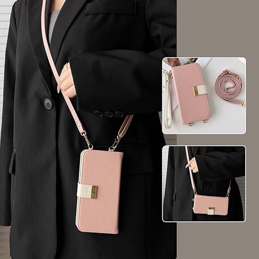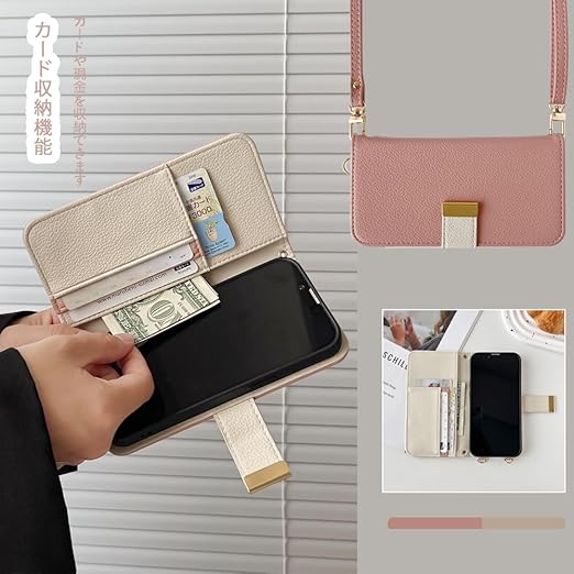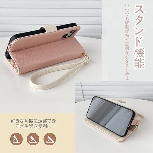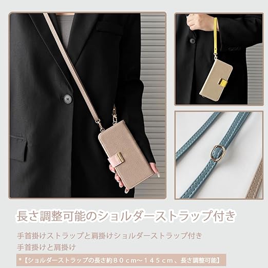 【ショルダー&ストラップ付き】❶大人かわいいカラーを取り揃えたツ−トンカラーケース。❷お揃いのショルダーストラップ付き、ストラップの長さ約80cm~145cm 、長さ調整可能のショルダーストラップで肩や