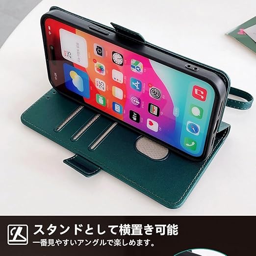 【機能性1:高品質PUレザー】外側のカバーには触感がとても良い高品質のPUレザーを採用します。内側のスマホホルダーは柔軟なTPU素材を採用したソフトケースです。耐衝撃の二重構造で落下の衝撃をうまく吸収し、本体をしっかりと守ります。フリップの表にゴールド色の金具を飾って、ユニークな高級感がアップします。