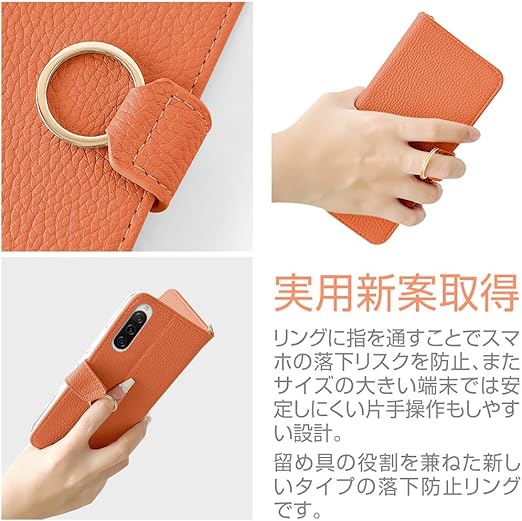 MAGICASE For Xperia 10 V ケース 手帳型 おしゃれ リング付き エクスペリア 10 V ケース 手帳型 かわいい 女性 SO-52D ケース シンプル 美しい 財布型 SOG11 ケース エレガント 人気 ストラップホール付き マグネット式 カード収納 スタンド機能 高級PU 肌感レザー 耐衝撃 レディース 手作 落ち着いた色 レトロ(オレンジ) a