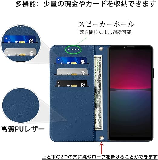Xperia 10 V ケース 手帳 高質PUレザー Xperia 10 V カバー SO-52D ケース 手帳型 SOG11 ケース Sony エクスペリア 10 V 携帯カバー 耐衝撃 皮革 内蔵マグネット開閉式 ベルトなし スマホケース おしゃれ カードポケット スタンド機能 便利 スプラット同梱 携帯ケース ブルー a