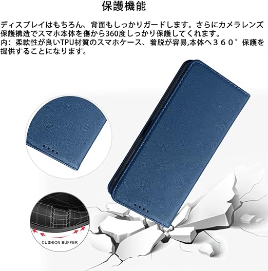 【多機能】:①[スタンド機能が付いて]:横向いて斜めに立てて、お好きな角度を調整できます。②[360度保護]:内蔵マグレット機能付きの手帳型カバーで、大切なディスプレイへのキズ、汚れ、衝撃も保護できます。③[マグネット開閉式]:携帯ケースの左側の裏に内蔵があり、両