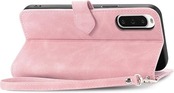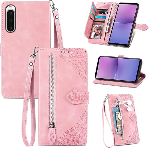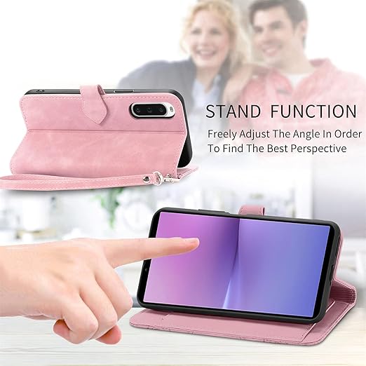 for Xperia 10 V エクスぺリア10 V SO-52D SOG11 ケース 手帳型 ビジネスフリップノートレザーケースシンプルなレトロなファッション携帯電話ケース防水と汚れた携帯電話ケース多機能財布収納付きスタンド携帯電話シェルPUレザー保護カバー耐久性のある摩擦(ピンク) a