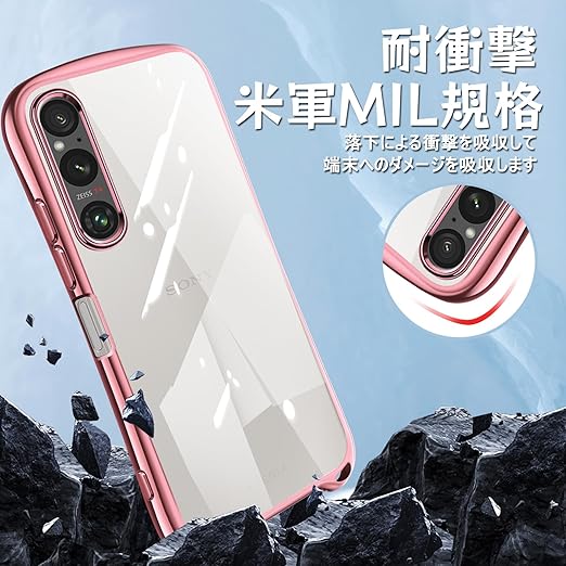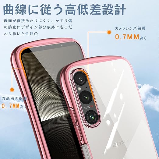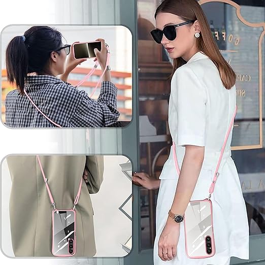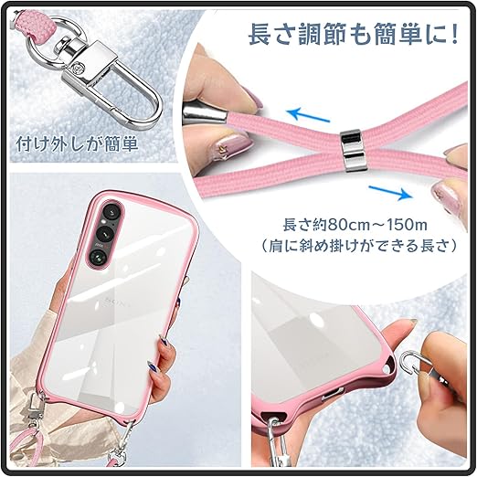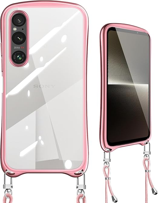 Xperia 1 V ケース クリア ショルダー Sony Xperia1 V カバー 肩掛け 首掛け ストラップ付き 斜めかけ 縄掛け 紐付き 薄型 軽量 TPU バンパー 耐衝撃 シリコン メッキ加工 韓国 ソニー エクスペリア 1 V スマホケース ローズゴールド a