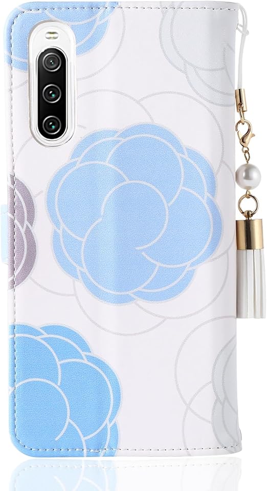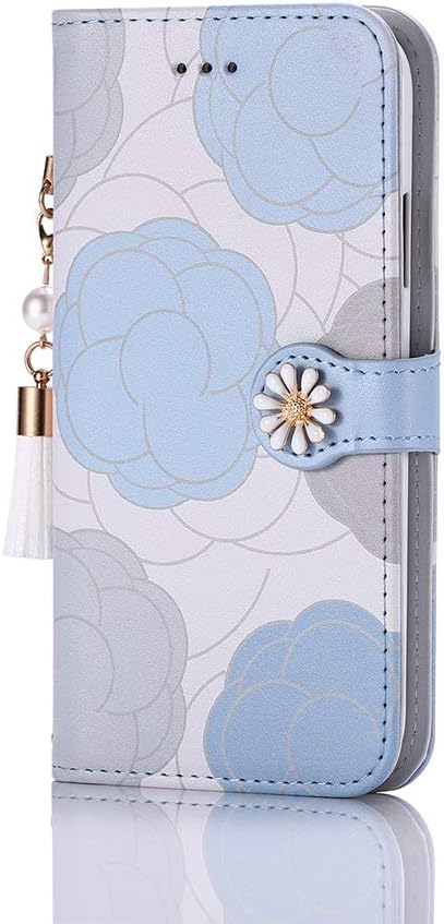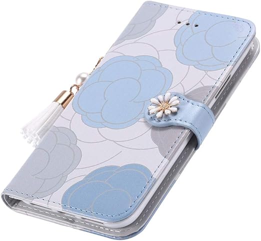 arrows we2 スマホケース 手帳型 可愛い 花柄 真珠のタッセル付き F-52E/FCG02など対応 女性 安い 軽い we2 F-52E 手帳型携帯ケース おしゃれ スタンド機能 カード収納 マグネット式 薄型 レザー arrows We2 FCG02 手帳型ケース 可愛い ライトブルー a