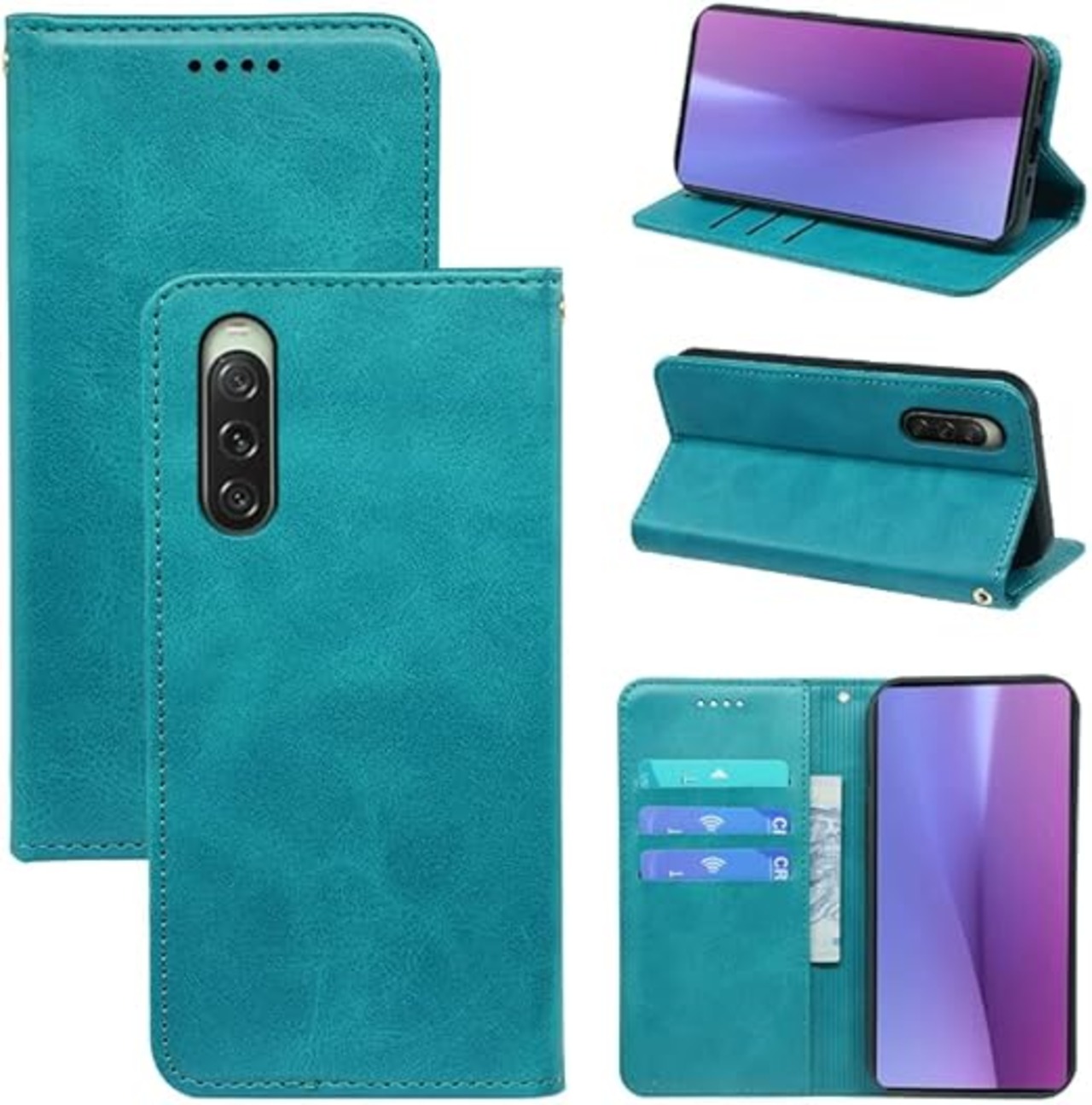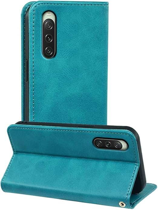 に適用するXperia 10 V SO-52D SOG11 ケース 手帳型 ノートブック型携帯電話保護カバー多機能携帯電話ホルスター財布携帯電話ホルダーバンプパターンテクスチャ耐久性摩擦耐性携帯電話ケース男性と女性に適した多色オプション (空色) a