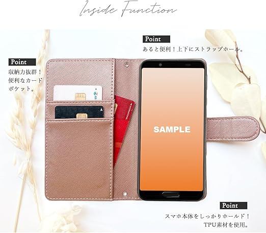 ◎手帳部分と内側ケース部分は接着しておりますが、強くめくったりひっぱると剥がれる場合がございます。内側のケースは黒TPUを使用し、本体をカバーします。電源ボタンや音量ボタンなどは、黒TPUケースの上から押す仕様となっております。カメラ部分などは機種に合わせた開口部が開いております。