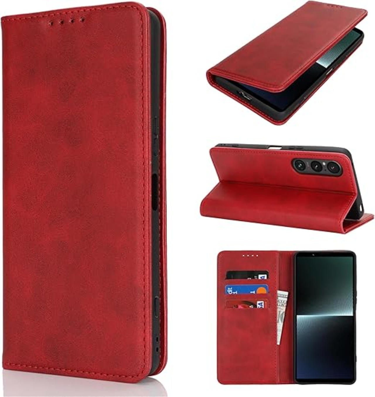 Xperia 1 VI ケース ソニー Xperia 1 VI SO-51E 手帳型 Xperia 1 VI スマホケース エクスペリア XQ-EC44 カバー Xperia 1 VI 手帳型ケース case zouzt 合成皮革 財布型 カード収納 内蔵マグネット 横置きスタンド機能 二つ折り 手作り 大人っぽい 落ち着くデザイン 5色 レッド a