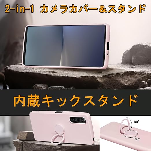 for Xperia 10 V SO-52D SOG11 ケース 液状シリカゲル親肌TPU新型携帯スタンド保護カバーカップル 放熱強純色極シンプル(10 Vピンク) a