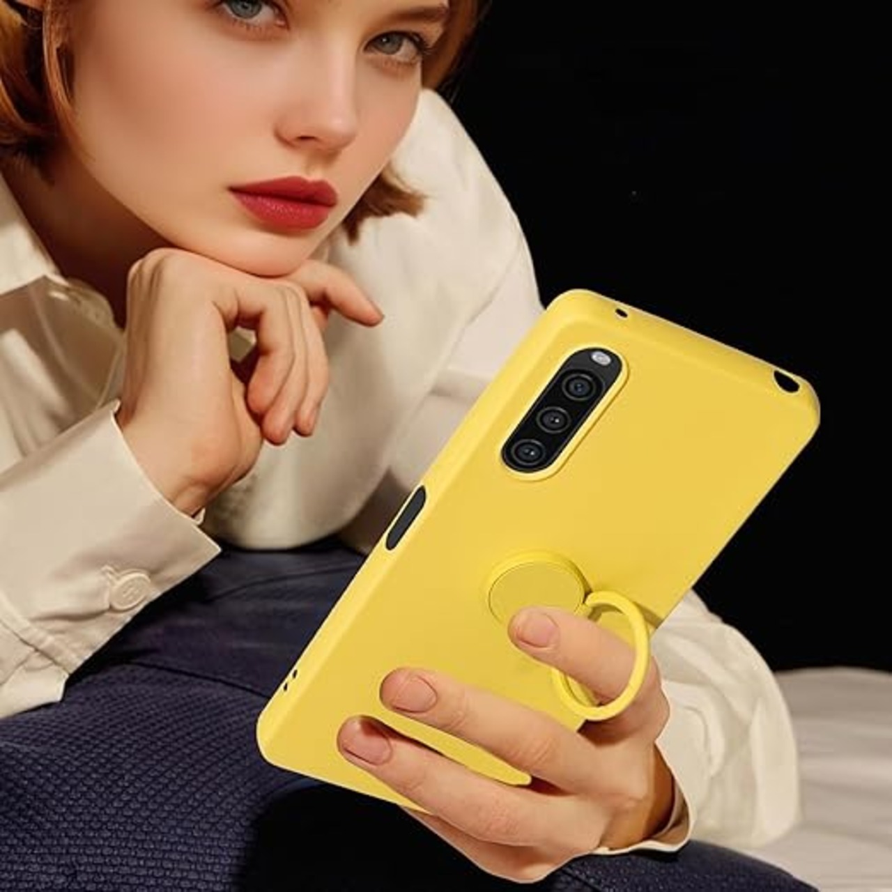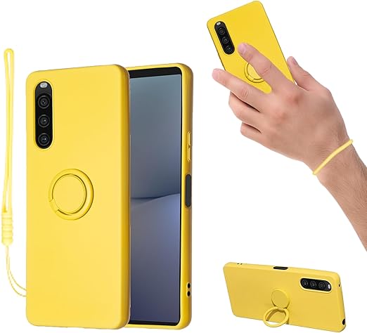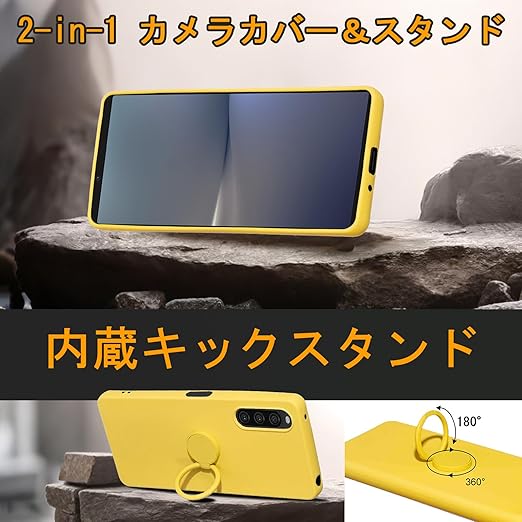 for Xperia 10 V SO-52D SOG11 ケース 液状シリカゲル親肌TPU新型携帯スタンド保護カバーカップル 放熱強純色極シンプル(10 V黄色い) a