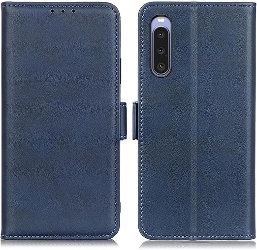 Xperia 10 V ケース 手帳型 エクスペリア 10V ソニー SO-52D SOG11 カバー 高級PUレザー シンプル手帳ケース 耐摩擦 サイドマグネット式 カード収納 大容量 3枚 横置きスタンド機能 耐衝撃 ブルー01 a