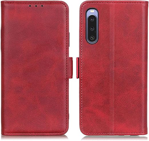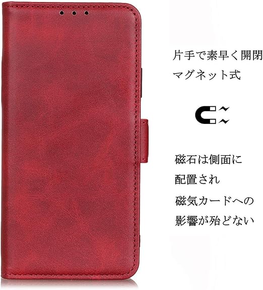 Xperia 10 V ケース 手帳型 エクスペリア 10V ソニー SO-52D SOG11 カバー 財布型 高級PUレザー シンプル手帳ケース 耐摩擦 サイドマグネット式 カード収納 大容量 3枚 横置きスタンド機能 耐衝撃 レッド a