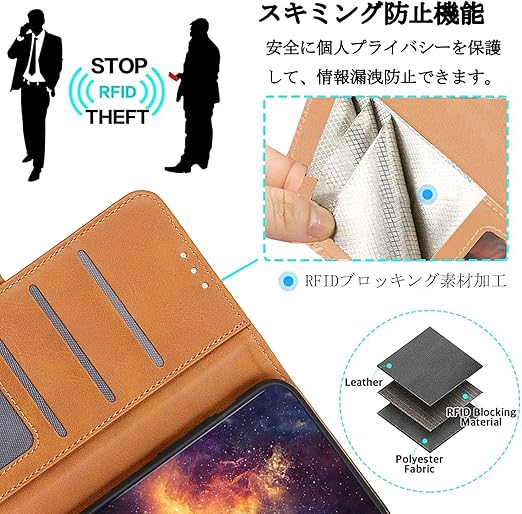 【高級感溢れる】:外部は耐熱性と柔軟性を誇るPUレザーを採用した、キズや汚れに強く、放熱性や耐衝撃が良く、携帯本体落下防止に役立ちし、落としても衝撃を緩やかにして、携帯カバー隅々までしっかりを全面保護できます。インナーケースは弾力性のあるソフトTPU素材を採用しており、脱着が楽々で、さらにカメラレンズ保護構造で、レンズを下に置いても安心。