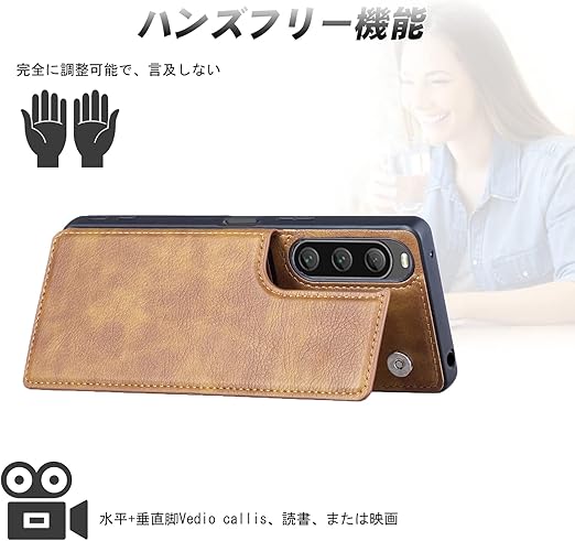 【自由の機能さ】ケースを装着ままで携帯のボタンを全てスムーズに使用し、スマホケースは自由に調整できる横置きスタンド機能が付き、、横向いて斜めに立てて、お好きな角度を調整でき、両手が解放され、お気軽に読書やビデオの観賞を楽