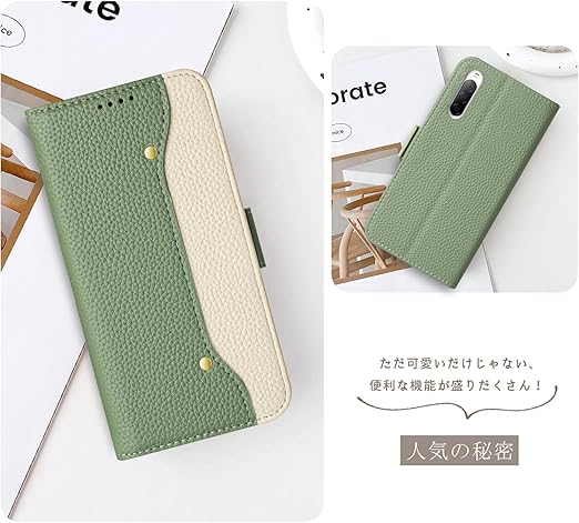 FEYYXI xperia 10 v ケース 手帳型 エクスペリア 10 v 手帳型 ケース ソニー 10 v 財布型 カバー カードポケット付き 全面保護 スマホケース カード収納 横置きスタンド機能 擦り傷防止 おしゃれ 上質な手触り 高級PUレザー ケース(Xperia 10 V SO-52D SOG11 6.1inch) 緑 a