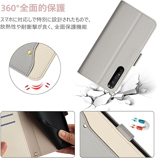 FEYYXI xperia 1 ii ケース 手帳型 エクスペリア 1 II 手帳型 ケース ソニー 1 ii 財布型 カバー カードポケット付き ケース 全面保護 スマホケース カード収納 横置きスタンド機能 擦り傷防止 おしゃれ 上質な手触り 高級PUレザー ケース(Xperia 1 II SOG01 SO-51A 6.5inch) グレー a