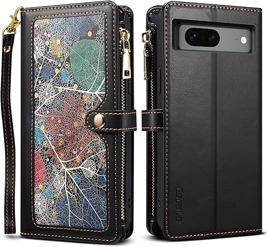 TUHUDOO Strap Series Google Pixel 7 ケース 手帳型 財布型カバー ショルダーストラップ ショルダータイプ ネックストラップ 取り外し可能 長さ調節 肩掛け 磁石付き レディース メンズ Google Pixel 7 カバー 耐衝撃 落下防止 かわいい カード収納ポケット (Google Pixel 7、ブラック) a