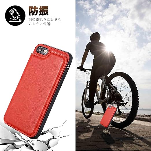 【Hbcnxny】ケース 手帳型 対応 iPhone SE 第2世代、iPhone7 iPhone8 スマホケース 耐衝撃 カードケース カード収納 手帳型ケース カバー オシャレ カード収納 背面(レッド)アップル あいふぉん7/8/2020 赤色 a
