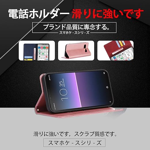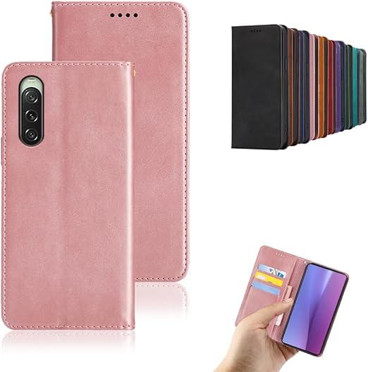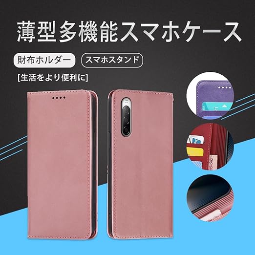 対応Xperia 10 V SO-52D SOG11 手帳型 シェルノートブックタイプ保護カバーノートブックカード収納側マグネットブラケット機能互換性のある耐衝撃性軽量モダンシンプルファッションPUレザー折りたたみ式フル保護カバー男性と女性のスマートフォンケース用(ローズゴールド) a