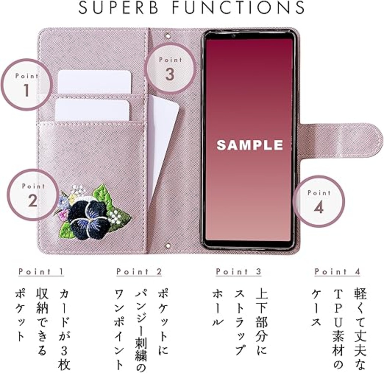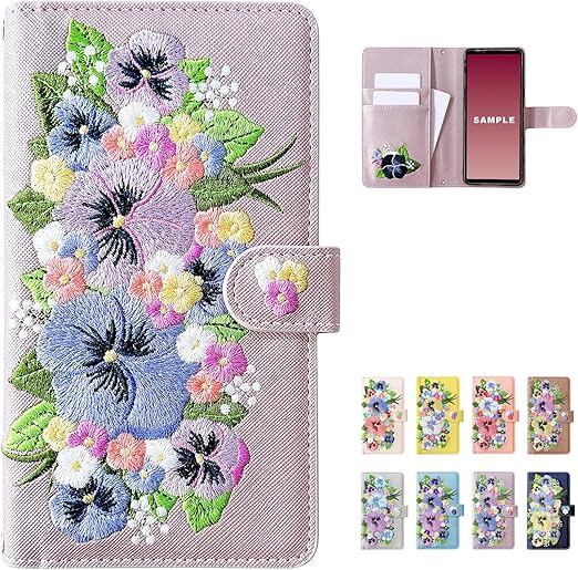 Xperia 10 Ⅴ 専用 SO-52D SOG11 A302SO XQ-DC44 ケース カバー 手帳型 SO-52Dケース SO-52Dカバー SOG11ケース SOG11カバー エクスペリア Xperia10Ⅴ ハンドあり パンジー 刺繍 パールパープル a
