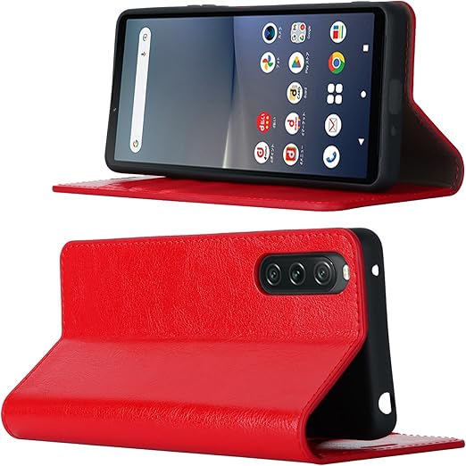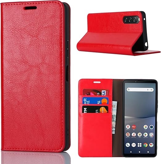 Pelanty For Xperia 10 V ケース手帳型 SO-52D au SOG11 携帯カバー 手作り 本革レザー 財布型カバー カード収納 スタンド機能 耐衝撃 マグネット無し 開閉ベルト無し ソニー エクスペリア10 V 第5世代 so52d スマホケース【レッド】 a