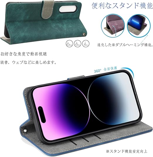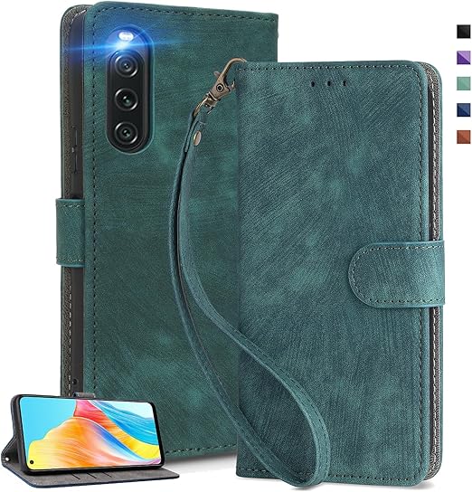 UnivoColors Sony Xperia 10 V(SO-52D/SOG11) 手帳型 スマホケース 携帯カバー 高級合皮 RFIDブロッキング カード収納 専属ストラップ同梱 マグネット開閉 横置きスタンド機能 放熱性 着脱しやすい 全面保護 カメラ保護 衝撃吸収 落ち着いた色(グリーン) a