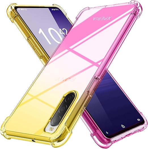 Xperia 10 III 用 ケース Xperia 10 iii Lite 用 ケース クリア 薄型 グラデーション色 ケース 軽量 tpu 耐衝撃 XQ-BT44 SOG04 SO-52B 用 スマホケース 透明 米軍MIL規格取得 おしゃれ 黄変防止防塵一体型 人気 エクスペリア 10 III 用 携帯カバー ゴールド/ピンク MD-SXJB-05-04 a