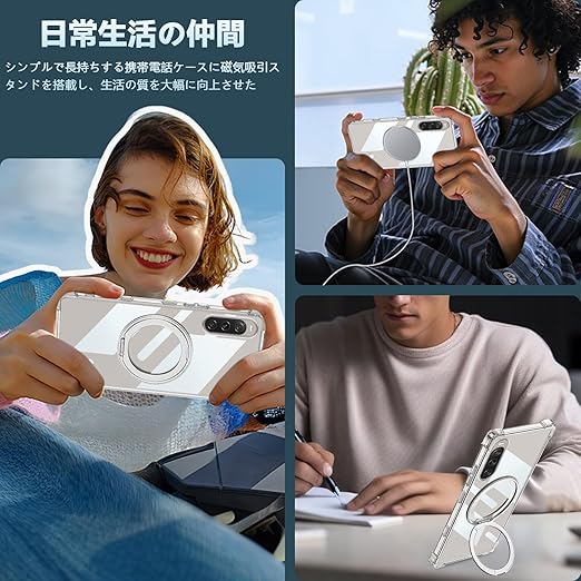 【磁気スタンド機能】ケース背面の磁気吸引バックルはホルダーとして使用できます,ストラップを壊さない高品質の強化および厚みのある金属素材で作られています、耐久性が高く錆びません,携帯ケースを横に置くとスタンドになり、手を持たずに動画を楽しむことができます。リングは360度回転でき、180度に調整できます。指1本に装着すれば、指がリングを通り抜