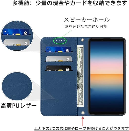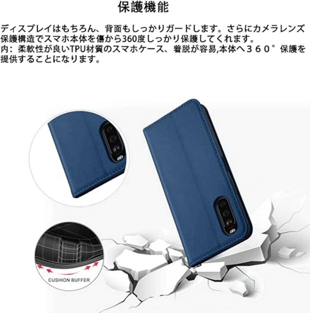 Xperia 10 III SOG04 ケース 手帳型 高質PUレザー ソニー Xperia 10 III カバー Sony SO-52B ケース エクスペリア10 III 耐衝撃 皮革 内蔵マグネット開閉式 ベルトなし スマホケース おしゃれ カードポケット スタンド機能 便利 スプラット同梱 携帯ケース ブルー a